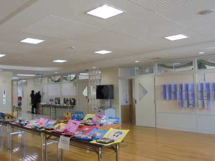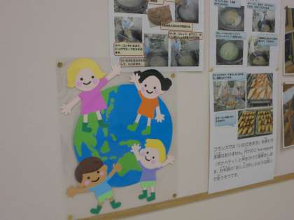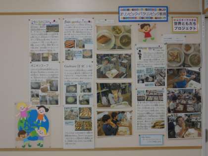 オープンスペースや階段、廊下には、子どもたちの作品だけでなく、オリンピック・パラリンピック教育の一環、「世界おともだちプロジェクト」の取り組みも紹介しています。