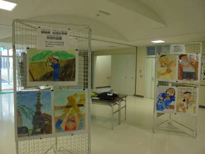 姉妹校山辺小学校から作品が届きました。1階に展示していますので、学校に足をお運びの際には、是非ご覧下さい。