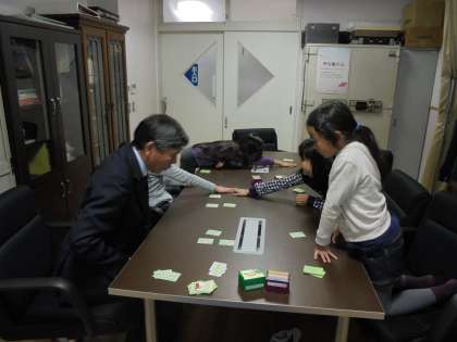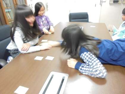 恒例の校長先生による百人一首です。3年生の5人の子が、校長先生と一緒に楽しい時間を過ごしていました。
