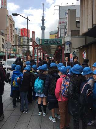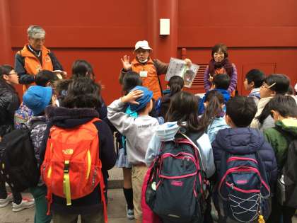 スカイツリーが近くに見えます。ボランティアガイドの皆様に詳しく説明をしていただきます。