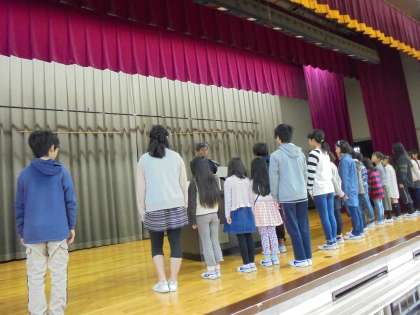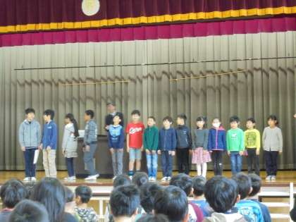 校長先生から東日本大震災についてのお話がありました。また、せたがやの子と健康努力児童の表彰がありました。せたがやの子には、作文5名、短歌1名が入賞しました。
