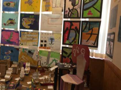 泉の学び舎の三宿中学校の「学芸発表会 展示の部」に、学び舎小学校から図工作品を交流展示として出品しました。中里小学校からも各学年の代表作品49点が展示されました。