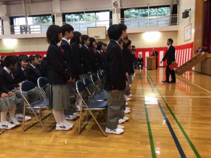 本日、泉の学び舎 世田谷区立三宿中学校の入学式がありました。2週間前に卒業した前年度6年生が、ちょっぴり大きめの標準服に身を包み凛々しい姿で参加していました。 新入生代表の言葉を中里小学校の卒業生が務めました。