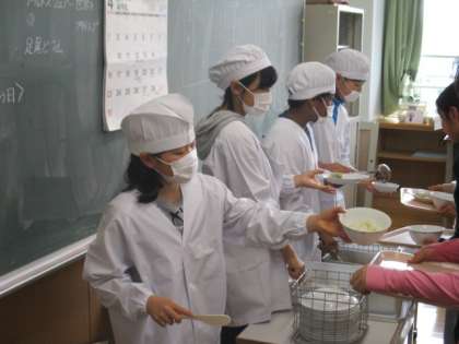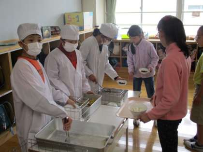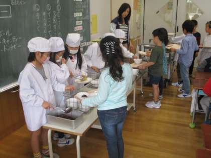 1年生は給食なしで下校ですが、2年生以上は今年度初めての給食がありました。どのクラスも給食当番がしっかりと責任を果たしています。今年もおいしい給食がとても楽しみです。