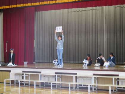 20日の朝の活動は、「委員会紹介集会」でした。6年生の各委員会の委員長から委員会活動の内容などについての紹介がありました。