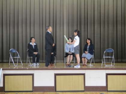 21日金曜日、離任式が行われました。今年度転出された4名の教職員の方が駆けつけてくれました。どの先生方も今まで中里小学校のために力を尽くしてくださいました。ありがとうございました。