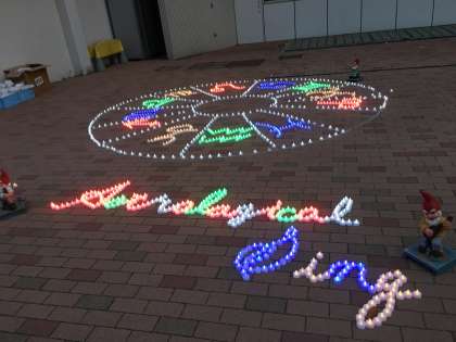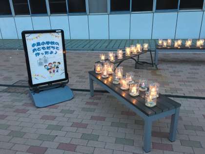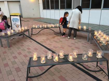 26日夕方、昭和女子大学のキャンパスで「キャンドルナイト」が催されました。昨年度4年生(現5年生)が図工の時間に制作したキャンドルが飾られました。