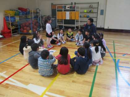 その後の集会では、初めに全体で縦割り班の班長さんの自己紹介を行い、その後各班に分かれて一人ひとり自己紹介をしました。1年間班で協力して、楽しい時間を過ごしていきましょう。