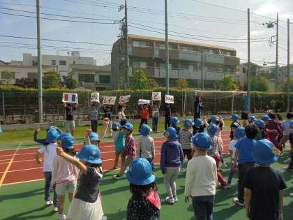 前回行った「体じゃんけん」の英語バージョン、そして、フランス語バージョンを行いました。