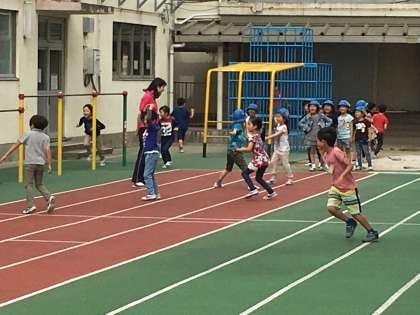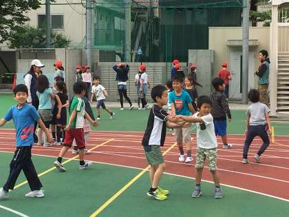 9日朝の活動は「わくわくクラスタイム」でした。各クラスで決めた運動をします。どの学年も鬼ごっこが大好きです。朝から元気に体を動かしました。