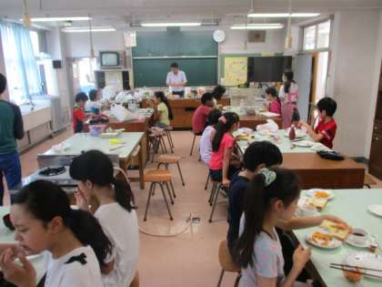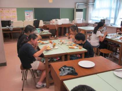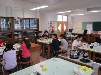 12日、6年生では家庭科の授業で今年度最初の調理実習を行いました。各班で朝食のメニューを考えそれを調理しました。おいしくできました。