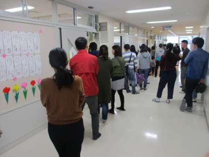 13日、引き取り訓練を行いました。大規模地震の際などに保護者に自動を引き渡すための訓練でした。足元の悪い中ご来校いただきました保護者の皆様、ありがとうございました。