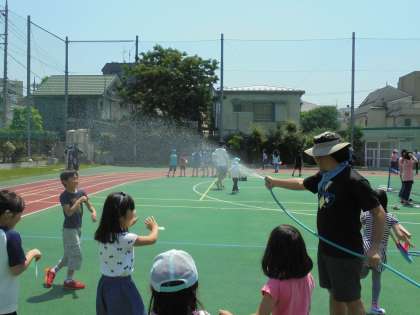 テニスやバドミントン、ストラックアウト、しゃぼん玉、フラフープなど楽しく遊びました。PTA遊び場開放委員・PTA役員の皆様、そして暑い中、準備やホットドックを焼き続けてくださった「おやじの会」の皆様、本当にありがとうございます。