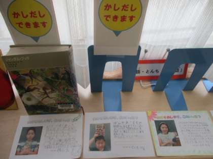 図書室の中には5年生の人が作ってくれた「おすすめの本」の紹介コーナーもありました。とてもすばらしいできばえです。