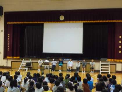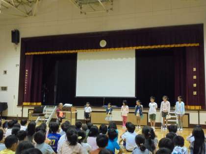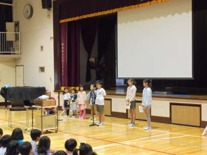 各学級の代表児童が水泳学習に向けてのめあて等を堂々と発表しました。