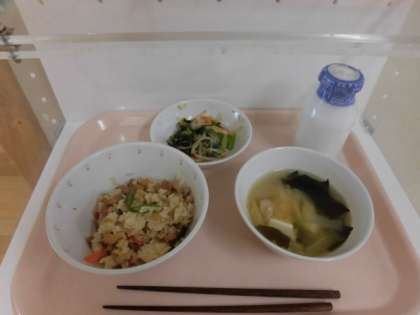 献立 とりめし 野菜のごまだれかけ 豆腐汁