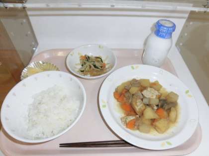 献立 ごはん 五目うま煮 糸寒天と野菜のあえ物
