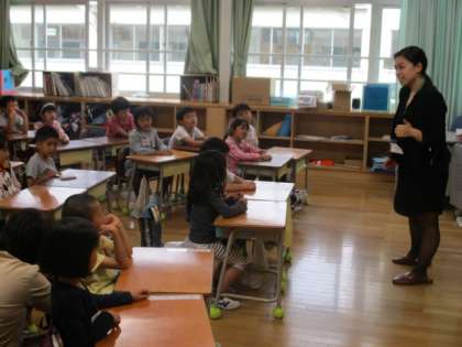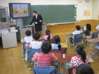 13日、1年生〜4年生の英語活動の授業で外国人講師(ALT)の授業がありました。正しい発音、大きな声で一生懸命学習に取り組みました。
