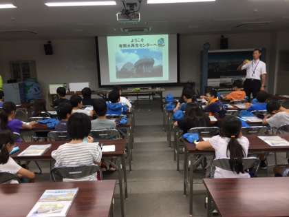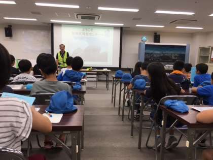午後は有明水再生センターで学習します。初めに下水道の仕組や水再生センターのはたらきなどについて学びました。