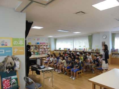 6/28(水)、下馬図書館の職員が図書室でお話会を行ってくれました。