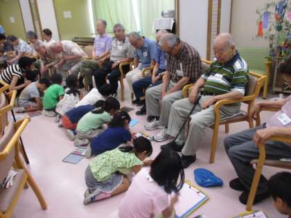 担当したお年寄りの似顔絵を描きました。楽しい時間はあっという間に過ぎ、別れを惜しみながら帰校しました。