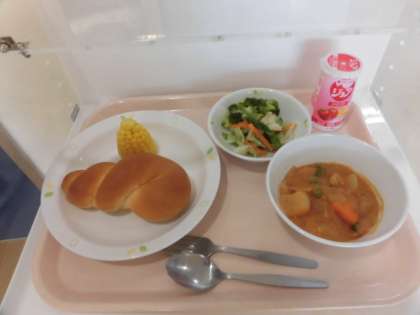今日は一年生に給食で使うトウモロコシの皮むきをお手伝い