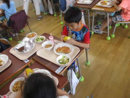 1校時に皮むきをしたとうもろこしが給食に出ました。いつも以上に甘く美味しく感じました。