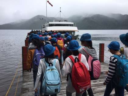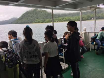 菖蒲ガ浜で中禅寺湖汽船に乗船しました。大型船で快適です。