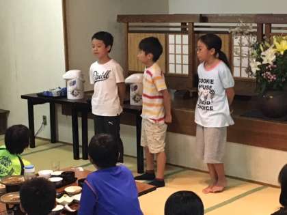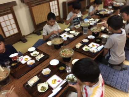 夕食の様子の続きです。特に地元産のお米で炊いたご飯がとても美味しいです。たくさんの人がお代わりをしていました。