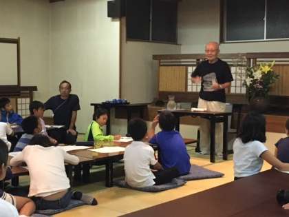 夕食の後、8時から「疎開体験のお話」を聞きました。平和の尊さを改めて感じることができました。三土会の皆様、ありがとうございました。
