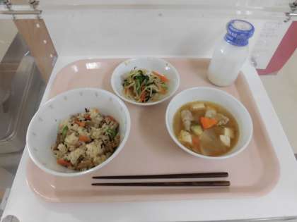 献立 五目ごはん さつま汁 野菜のからし醤油和え