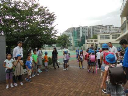 中里小学校を卒業した三宿中の生徒が来て、一緒にあいさつをしてくれました。