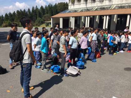 宿舎の「なかのビレジ」に到着しました。開室式の後昼食です。