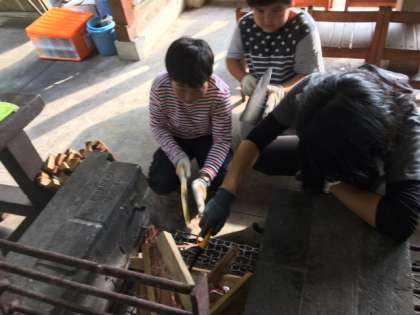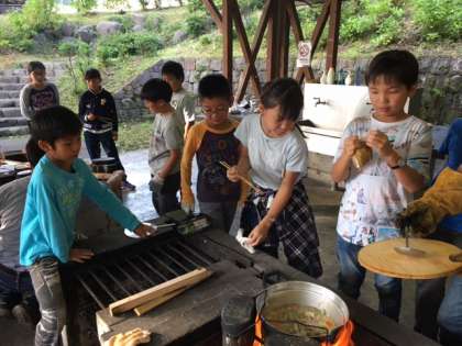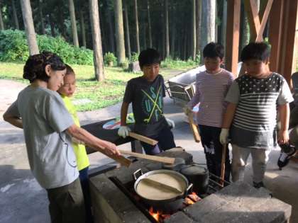 1日目の夕食は、班で協力して飯盒炊さんです。