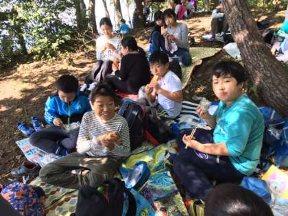途中きついところがたくさんありましたが励まし合って、全員山頂に到着しました。お昼のお弁当が美味しかったです。