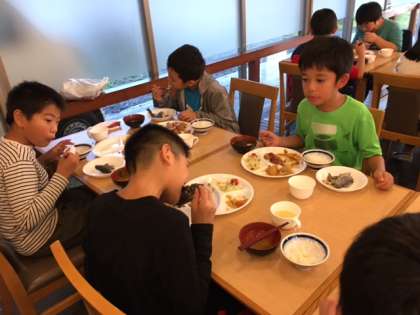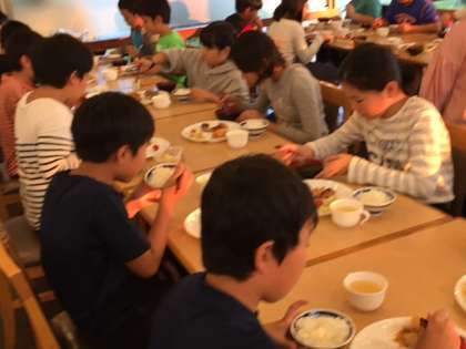 5時から夕食です。マスつかみのマスの塩焼きも一緒に食べました。