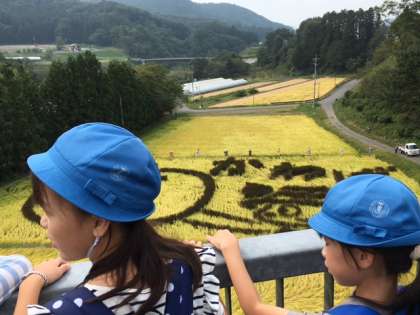 村めぐりの様子の続きです。大わらじやたんほアートを見ながらゴールの田園プラザを目指しています。