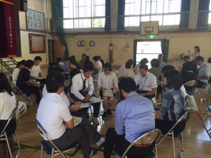 来年度から始まる「特別の教科 道徳」について、三宿中、池尻小、三宿小、そして、本校の教員で話し合いました。