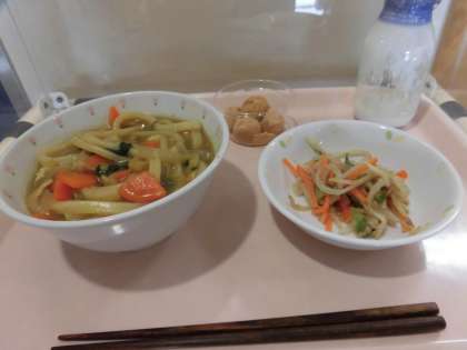 献立 カレーうどん もやしの胡麻和え 月見だんご 牛乳