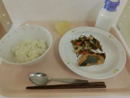 献立 ごはん さわらの西京焼き きざみこんぶの五目煮