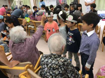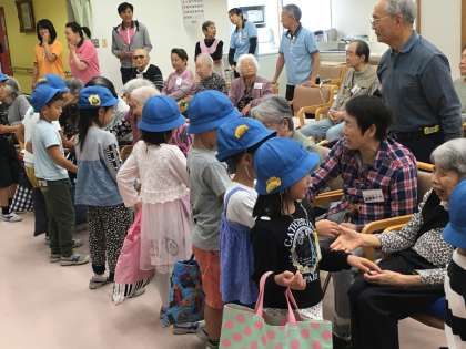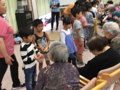 その後、手作りのお手紙を渡し、おしゃべりをしました。最後に「幸せなら手を叩こう」をみんなで歌いました。楽しい時間が過ごせました。