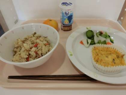 献立 豚肉とごぼうのごはん 擬製豆腐