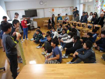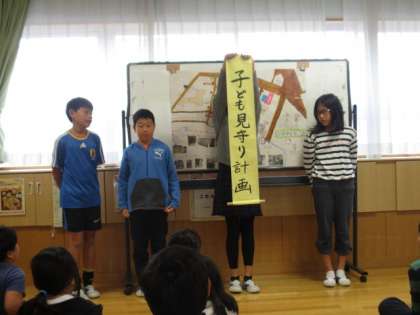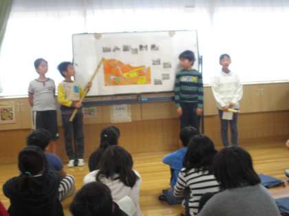11日、5年生では地域班ごとに自分たちの住む町の「地域安全マップ」を作成し、その報告会を行いました。実際に自分たちの目や肌で感じた地域の様子を掘り起こしながら危険箇所や安全性などをまとめました。報告のほかに新たな提案などもあり、とても立派な報告会となりました。保護者や地域の方にも見学していただきました。