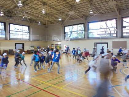 また、全校児童が体育館に集まっても運動できるというのも中里小学校のよさの一つでしょう。