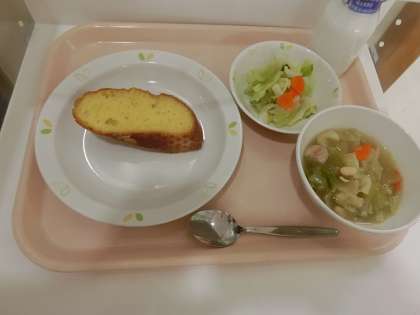 「ガルビュール」を献立に加えました。キャベツと白インゲン豆のス