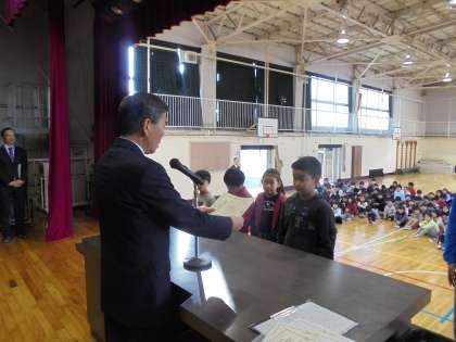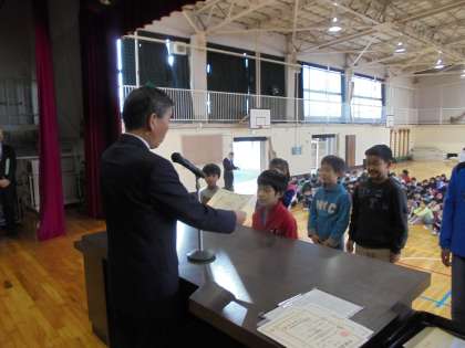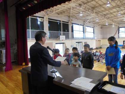 終業式の後、漢字検定の表彰を行いました。