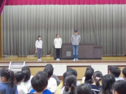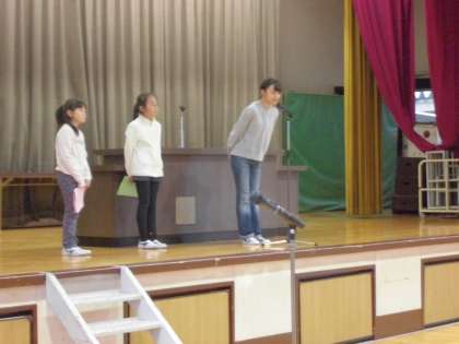 始業式では、2・4・6年の各児童が新年の、3学期の目標を堂々と発表しました。