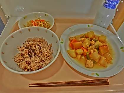 今日は小正月の行事に合わせて、お赤飯の献立です。小豆の