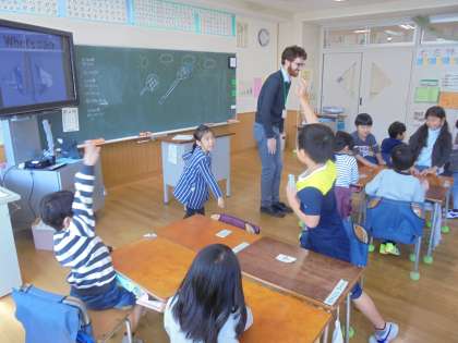 1/23(火)、1年生がグレッグ先生と「スポーツ」の名前について学習しました。
