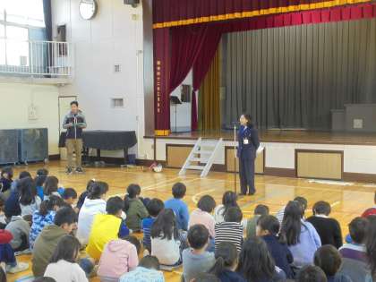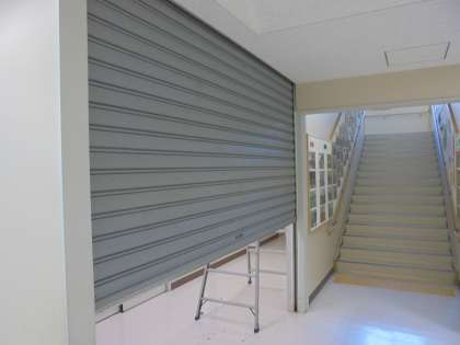 地震が発生し、主事室から出火。防火扉が閉まる状況での避難訓練でした。